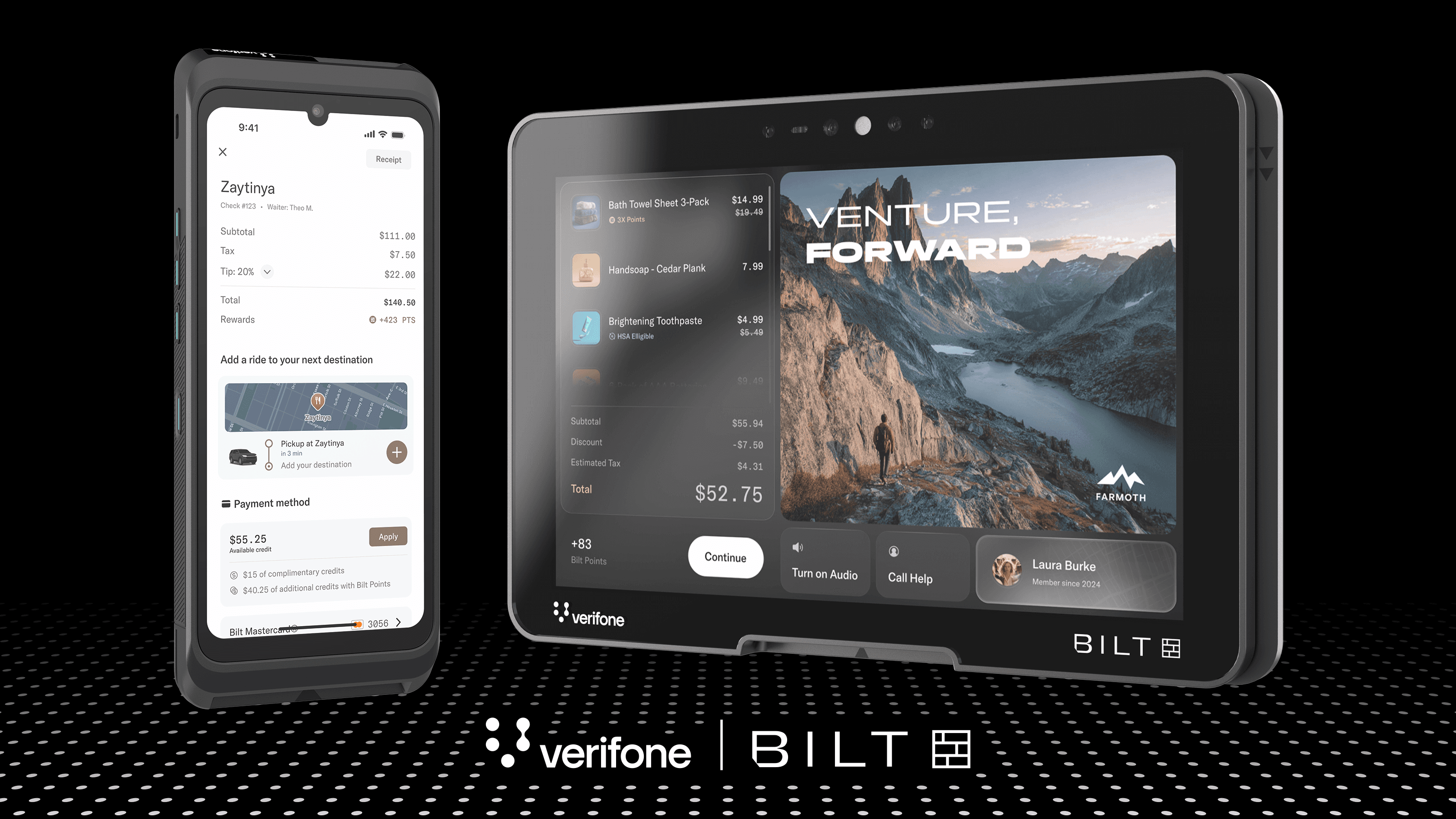 Today, we're thrilled to announce our partnership with Verifone to integrate Bilt's checkout and customer experience capabilities into the Verifone commerce platform, powered by Verifone Victa—Verifone's next-generation Android payment devices. The integration transforms how merchants engage customers at point of sale, embedding personalized experiences and member identity seamlessly and directly into the payment flow.
